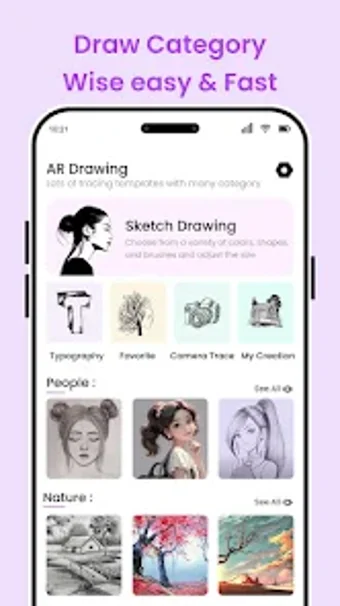 De app bevat verschillende categorieën en sjablonen, zoals dieren, auto's, natuur en voedsel, waardoor gebruikers hun creativiteit kunnen uiten. Bovendien zorgt een vergrendelingsfunctie ervoor dat tekeningen niet per ongeluk worden gewist terwijl je bezig bent. AR Draw Sketch bevordert het verbeteren van tekenvaardigheden en biedt een leuke manier om te leren schetsen, waardoor het een waardevolle toevoeging is aan de hobby's van elke kunstenaar.